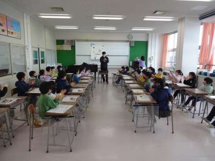 「さがしてみよう ならしてみよう」の曲に合わせて、リズム打ちをしました。