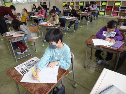小学生図画コンクール『わたしのママ・パパをかきましょう』の下書きをしています。
