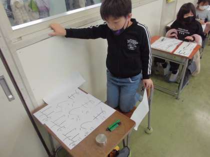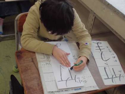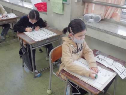 硬筆墨で「竹うま」を書きました。3つ書いた中からどれを提出するかを選ぶ目線も真剣です。