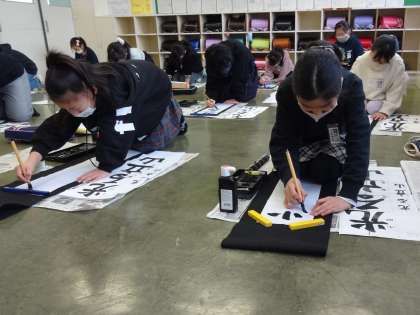 「光る立山」を、気持ちを集中して書きました。初めて書いた時に比べて、字の大きさのバランス、払い等、とても上達しています。