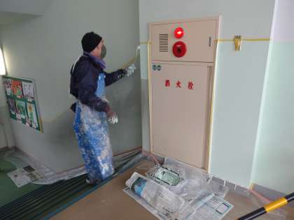 そこで、今年に入ってから、用務員さんが、少しずつペンキを塗って、きれいにしてくださっています。広い校舎なので、手間がかかります。ありがとうございます。
