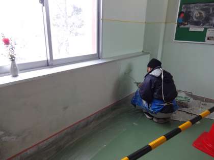 2学期末のぴかぴか週間で、全校児童が壁の汚れ落としを頑張りました。それでも手に負えません。
