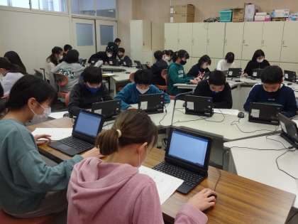 卒業文集の作文作りは大詰めを迎えています。作文は、一人一人ワープロソフトで作成しており、校正段階に入っています。
