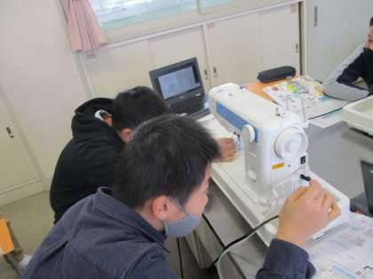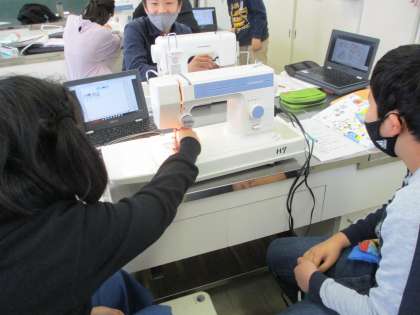 安全にミシンを使うために、ミシンの取り扱い方法を学習しました。電源のつけ方から、針のつけ方等、プリントとクロームブックを見ながらペアで確認しました。