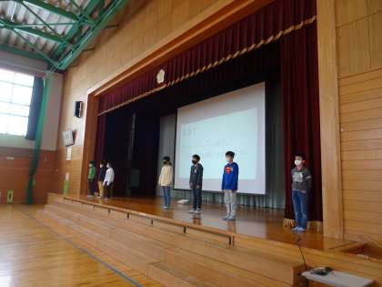 来る2月9日に行う「なかよし縄跳び大会(寒さに負けるなウインターカップ)」について、運動委員会が説明しました。