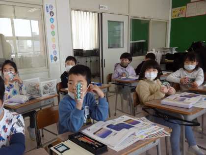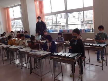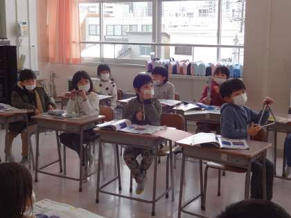 夕方→夜→明け方の星空を想像しながら、一人一人の感性で打楽器を鳴らし、学級全体で表現しました。