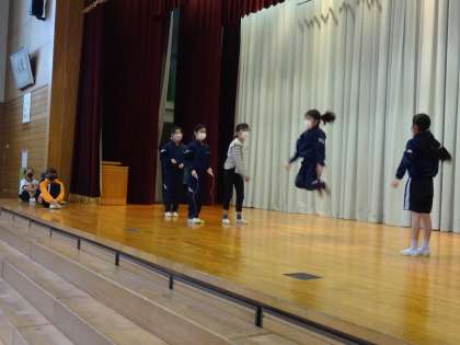 1/28(金) 4年生 長縄跳びの組合せ技を披露 1