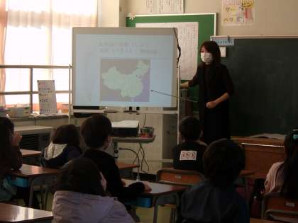 富山県在住の中国の方をお招きしてお話をしていただきました。中国の国土や文化の話を聞いたり、楽器を体験したりし、理解を深めました。