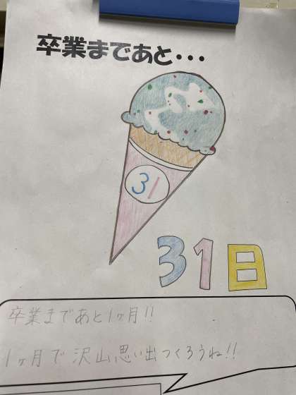 卒業まで学校に登校する日数が、32日になりました。一人一枚カレンダーを作り、卒業までのカウントダウンを始めました。卒業がどんどん近付いてきています。