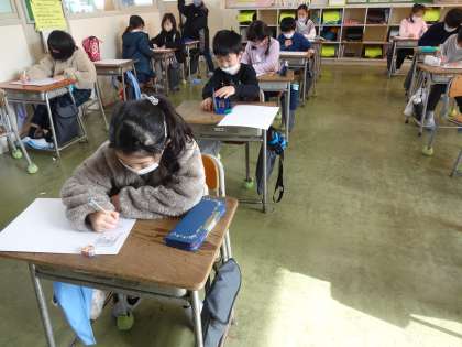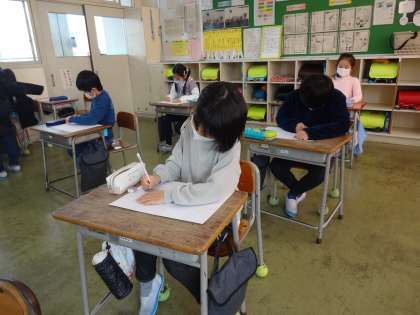 スケートをしたこと、温泉へ行ったこと、料理を作ったこと等、そのときの様子や気持ちを振り返りながら、下書きを始めました。
