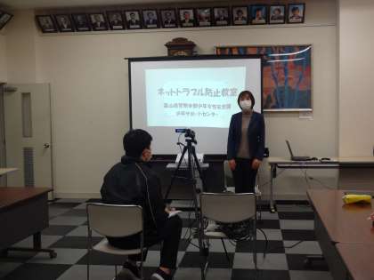 「富山県警察本部 少年女性安全課 少年サポートセンター」の職員をお招きし、教職員研修会「ネットトラブル防止教室」を行いました。