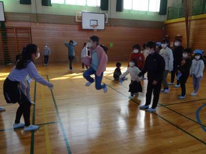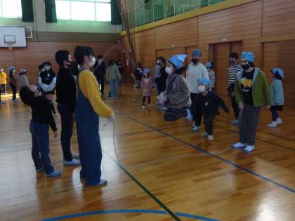 2日後の「なかよし縄跳び大会」での勝利を目指して、いくつかのチームが自主練習をしています。