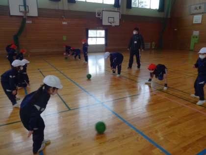 2/8(火) 1年生 体育科「ボールと仲よし」