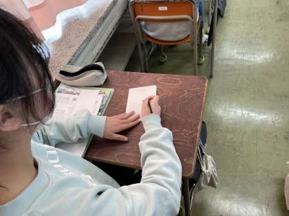 My Future、My dreamという、自分が将来楽しみにしていることや夢を、英語で紹介する学習に取り組み始めました。自分が紹介したいことを本にしています。どんな本が出来上がるか楽しみですね。