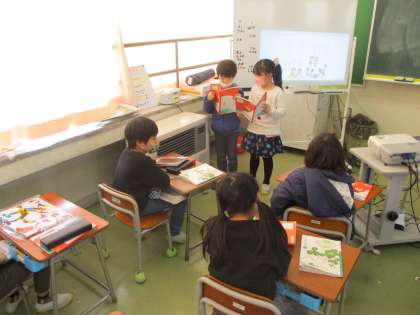 座席の列ごとに発表を行ったのですが、同じ教室では声が聞き取りにくいため、様々な場所に分かれました。