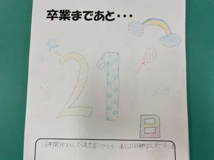 卒業まで残り21日となりました。今日は道徳で友達について話し合いました。友達ってどんな関係かを考えたことで、改めて環境が変わってもこれまでのように仲のよいみんなでいてほしいなと思いました。