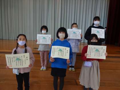 「富山県小・中・高校生書き初め大会」で、6名の児童が「推選」や「特選」を受賞しました。おめでとうございます。