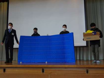 最後に、ベルマークで購入した物の紹介をしました。今年度は約61,000円分が貯まりました。多目的室の鉄棒の下に敷くマットを1枚、ドッジボールを5個購入することができました。