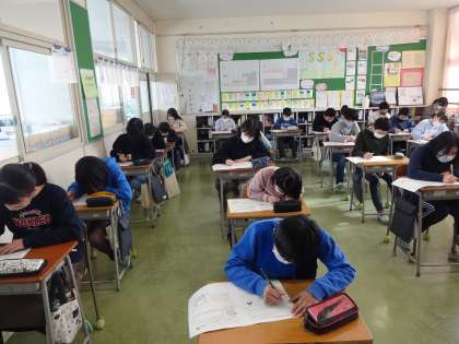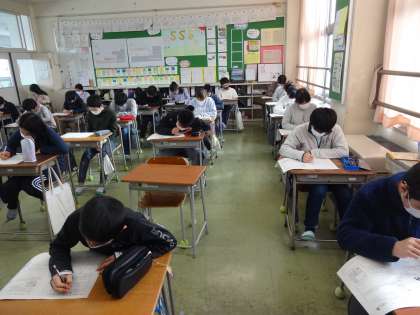 「3学期 校内学力調査」とタイトルが付いているテストに取り組んでいます。といっても、配点がある100点満点のテストではありません。