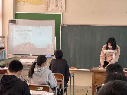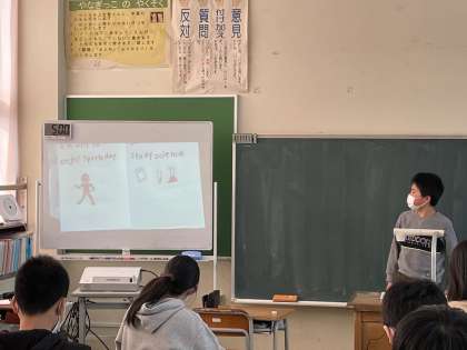 外国語科では、自分の将来について英語で本を作り、それをみんなに見せながらスピーチしました。I want to〜 を使って、自分のなりたい職業や入りたい部活について話すことができました。