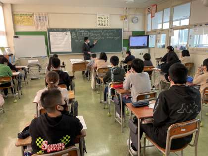 金曜日に行った校長先生作成の学力向上問題について、校長先生直々に解説をしていただきました。1つの問題にも様々な解き方があることや、分かりやすい覚え方を教えていただき、全員少し賢くなりました。