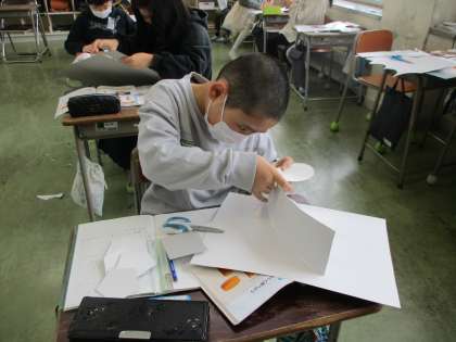円柱や角柱の性質について、実際に組み立てながら辺の数や頂点の数などを調べていきます。面積や高さを求めるために、展開したり、見取り図を書いたりして活用していきます。
