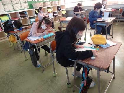 3月2日に行う「卒業を祝う会」の招待状を作っています。
