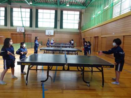活動の様子です。(上 卓球 中 バドミントン 下 一輪車・竹馬)