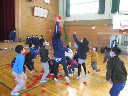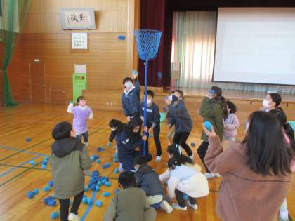 5年生が、6年生との思い出づくりのために「一緒に玉入れ」を企画してくれました。