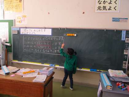 たしざんとひきざんの学習で今まで学習したことを生かして問題を解きました。