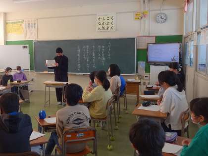 単元名「今、私は、ぼくは」では、資料を使って、効果的なスピーチをする学習をしました。
