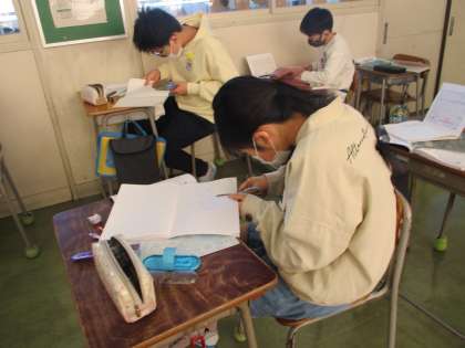 角柱と円柱の展開図をかいてから、実際に組み立てられるか確認しました。底面の形に気を付けたり、隣接する辺の長さに気を付けたりして組み立てました。