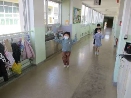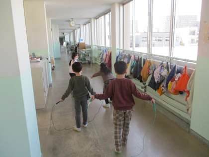 大繩跳び、短縄跳び、計算、音読、絵チームに分かれて、練習や準備をしています。
