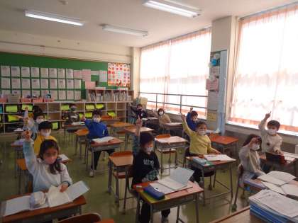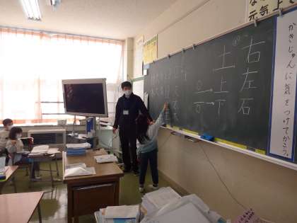 書き順を間違えやすい漢字や、形やつくりのよく似た漢字を発表しました。そして、空書きをしながら書き順を確かめました。