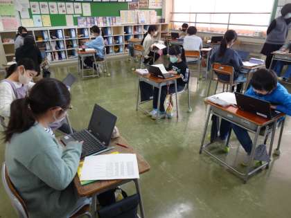 「調べて話そう、生活調査隊」の学習で、生活に関する疑問をグループでアンケート調査しました。