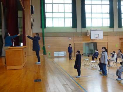 5限に卒業式の練習をしました。先生のアドバイスを受けながら、入場や卒業書授与等、一つ一つの動きを確認しました。