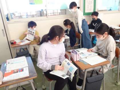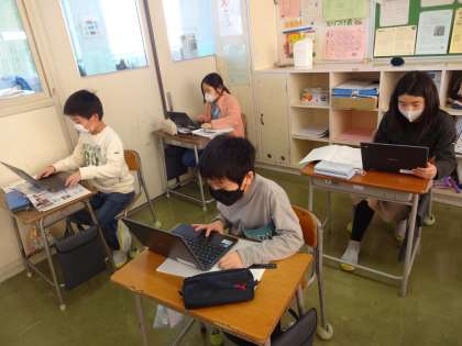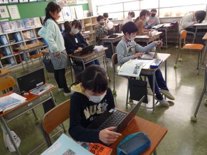 4枚の写真を選び、どのような記事にするのかを相談しながら、クロームブックのスライドというソフトを活用して作成します。