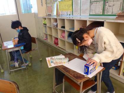 次時は、面をセロハンテープでつないで箱を作ります。写し取った空箱と同じ形・大きさの箱を作ることができるか楽しみです。