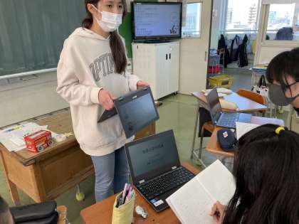 友達の発表を聞いて、驚いたことやと思ったこと等をメモしながら聴きました。日本とのつながり、日本と似ているところ、その国独自の文化等、興味深い発表になりました。