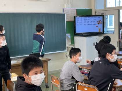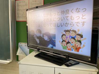 事前に問題になるアンケートをとり、その回答をみんなで見ながら誰が答えたアンケートかを考えました。クラスの友達の新しい一面を知れたり、やっぱりこの人と言えばこれだよねと確認することができたりと、とても盛り上がる集会となりました。