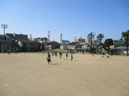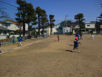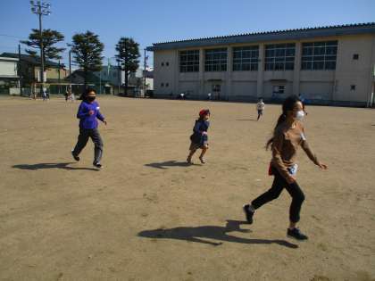 天気がよく、グラウンドでは久しぶりにたくさんの子供たちが遊んでいます。