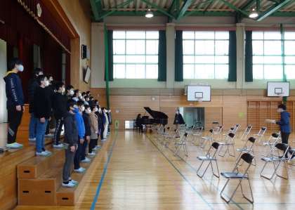 音楽専科の先生に指導していただきながら、卒業生の合唱曲「変わらないもの」の練習をしました。