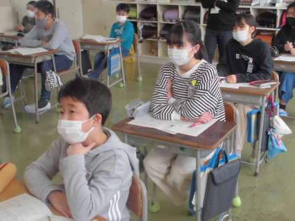 校長先生作成の学力向上問題について、校長先生直々に解説をしていただきました。かけ算の立式の順番等について、分かりやすい覚え方を教えていただき、全員少し賢くなりました。今後の学習に生かしていきます。