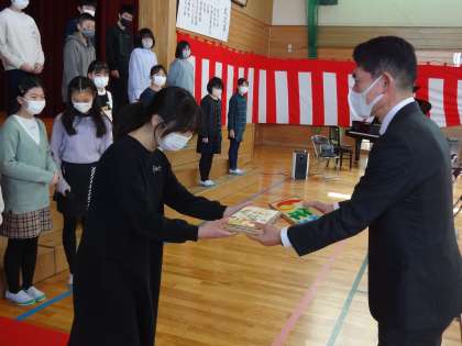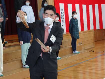 卒業式予行を終えて、全校が教室へ帰ろうとしたとき、6年生からのサプライズです。