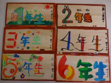 児童玄関の傘立て等の学年表示板をプレゼントしてくれたのです。