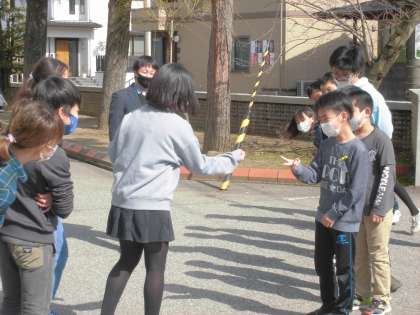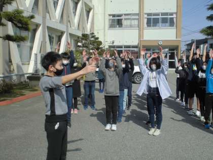 絶好の天候のもと、卒業式の歓送会の練習を5・6年生で行いました。万歳三唱時の掌の向きや当日の動き等を確認しました。時間が余ったので、6年生対5年生でじゃんけんをして勝った人から教室に戻りました。