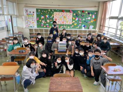 6年生になってからずっと教室の後ろに自主学習のノートを積み重ね、自学タワーを作ってきていましたが卒業を控え、今日でそのタワーともお別れです。