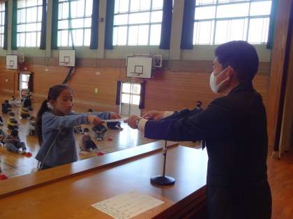 修了証授与の後、校長先生は、「新しい学年になったら、頑張りたいことを決めておく」という春休みの宿題を出されました。パラリンピックで金メダルを獲得した川除選手は、4年後に向けて頑張ることを決めている話もされました。