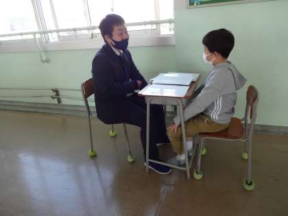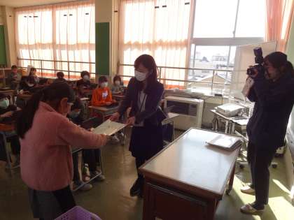 修了式に続き、4年生教室では、北日本新聞社の取材がありました。