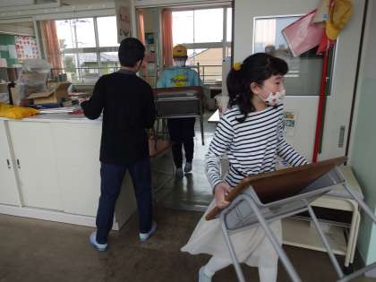 みんなで協力して、素早くやり遂げました。すると、机・椅子以外の物も運んでほしいと頼られ、頑張りました。5年生の活躍で助かりました。ありがとう。